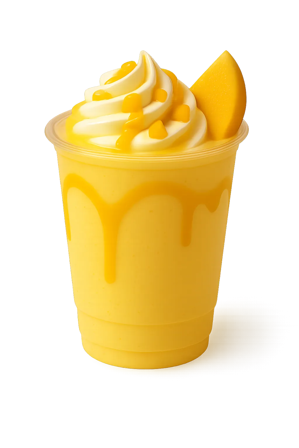 - 🧁 Whipped Cream: Topped with mango drizzle and fresh chunks